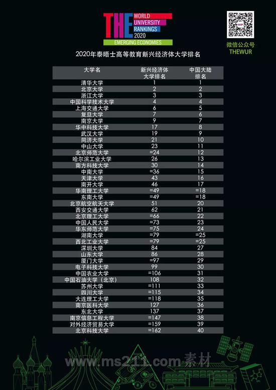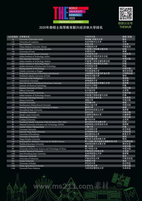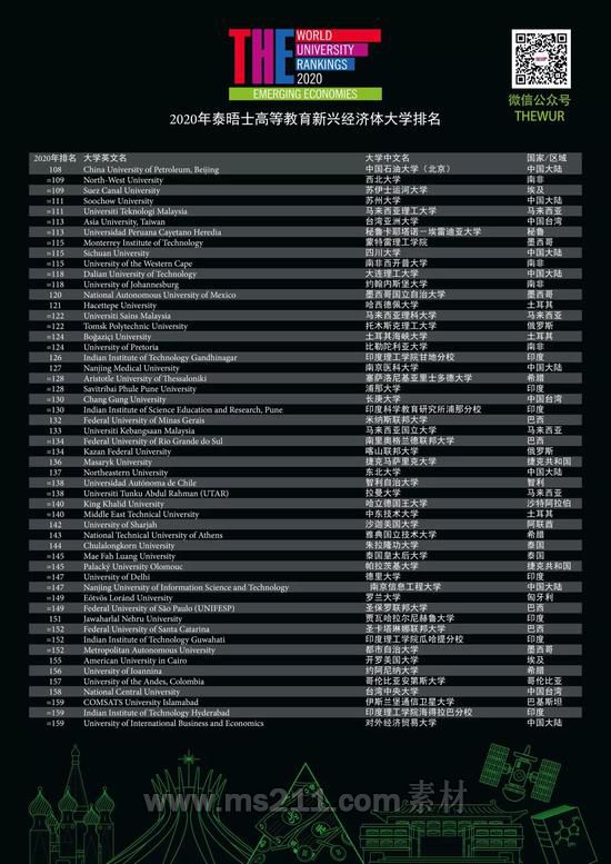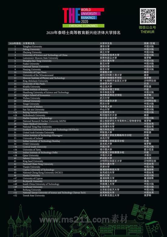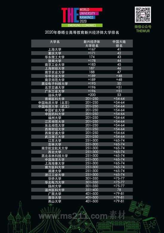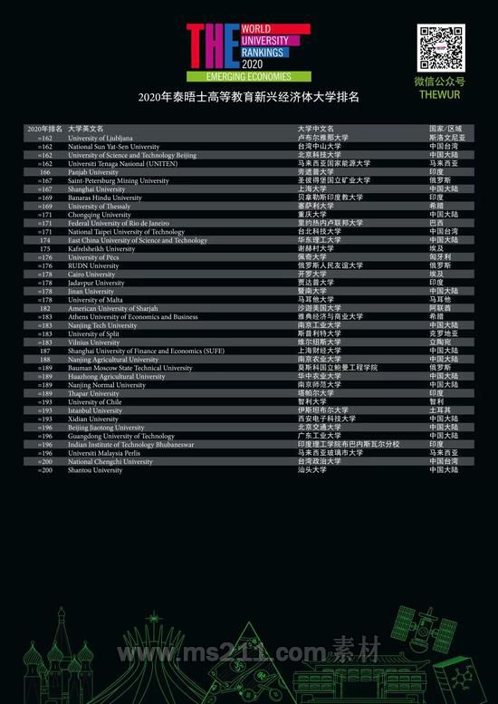 泰晤士高等教育新興經(jīng)濟(jì)體大學(xué)排名